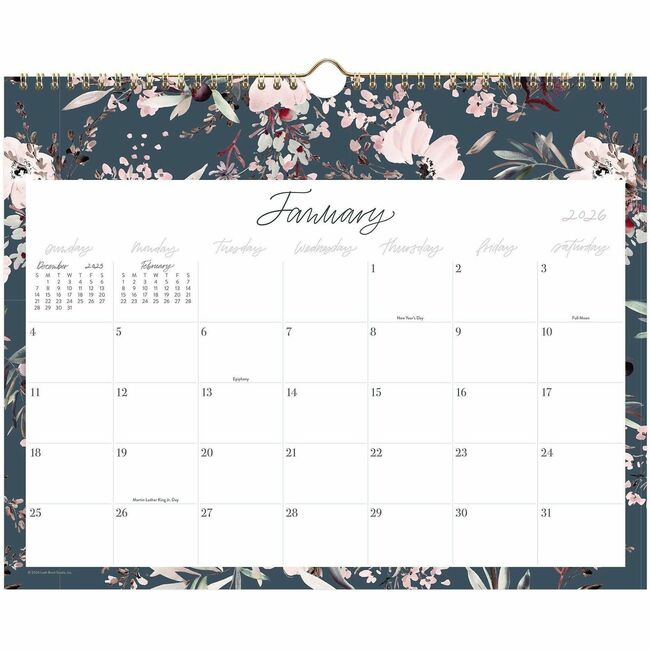 Monthly - 12 Month - January 2026 to December 2026 - 15" x 12" Sheet Size - 1.40" x 2.81" Block - Twin Wire - Wall Mount - Calista Floral - Dated Planning Page, Yearly Planner, Unruled Daily Block, Event Planning Sheet, Reference Calendar, Hanging Loop - 1 Each